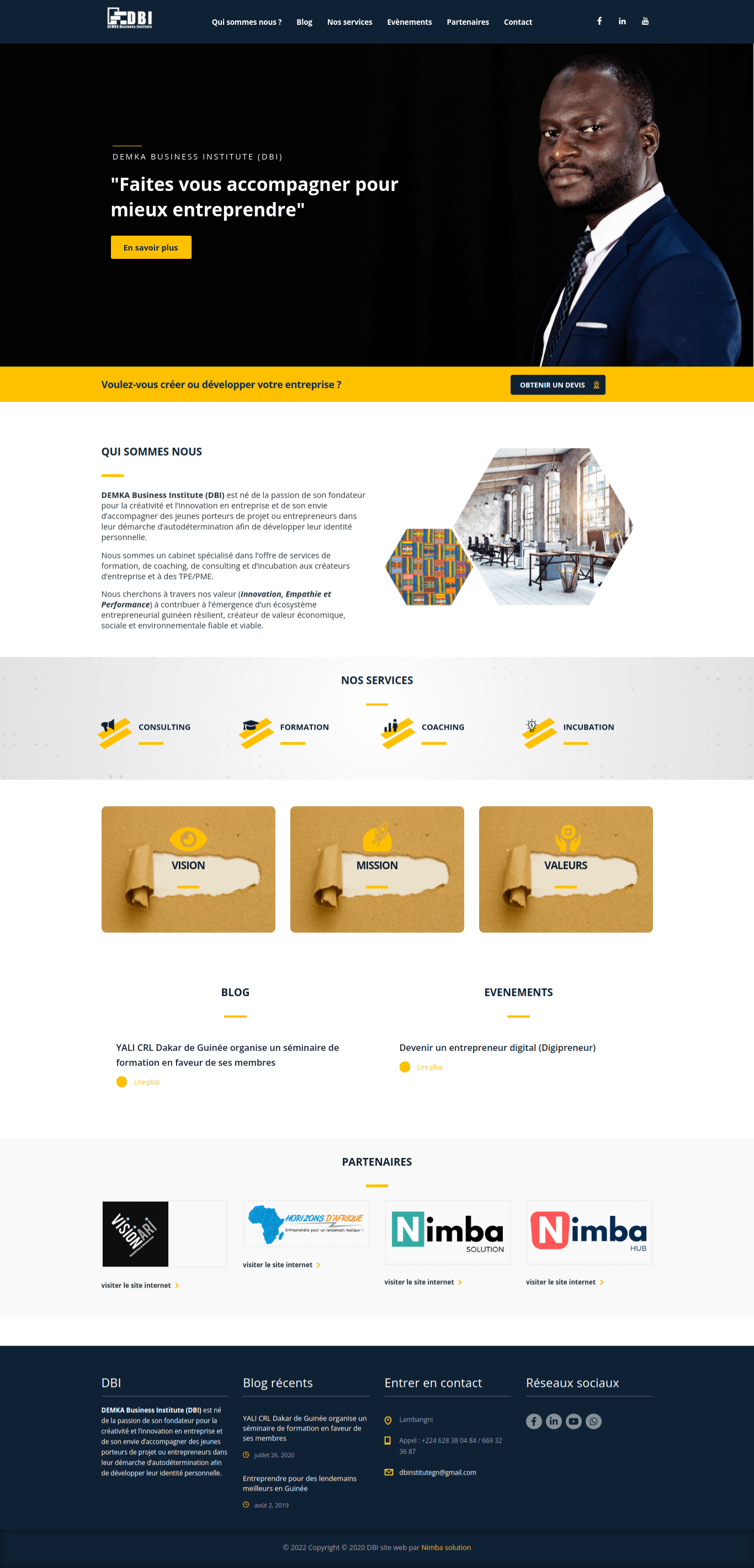 DEMKA Business Institute (DBI) est un cabinet spécialisé dans l’offre de services de formation, de coaching, de consulting et d’incubation aux créateurs d’entreprise et à des TPE/PME.